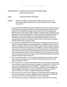 C5.6.2.2. Letters of Request. In addition to the normal process for LOR acceptance, an LOR supplied by the Agent must be accompanied by a letter from the Principal(s), FMS-eligible NATO or European country(ies), signed at a level with authority to sign an LOA, indicating that NSPA or OCCAR will act on the behalf of the country(ies) as its/their agent. The letter from the Principal(s) (See Figure C5.F20.) will describe and confirm the specific purchase the Agent is being empowered to make, and will recognize the commitment of the Principal(s) to abide by any terms and conditions of any LOA entered into by the Agent on its/their behalf, including full financial responsibility.